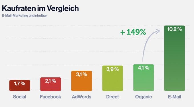 hohe Kaufraten wie E-Mail-Marketing – im Durchschnitt 10,2 Prozent.