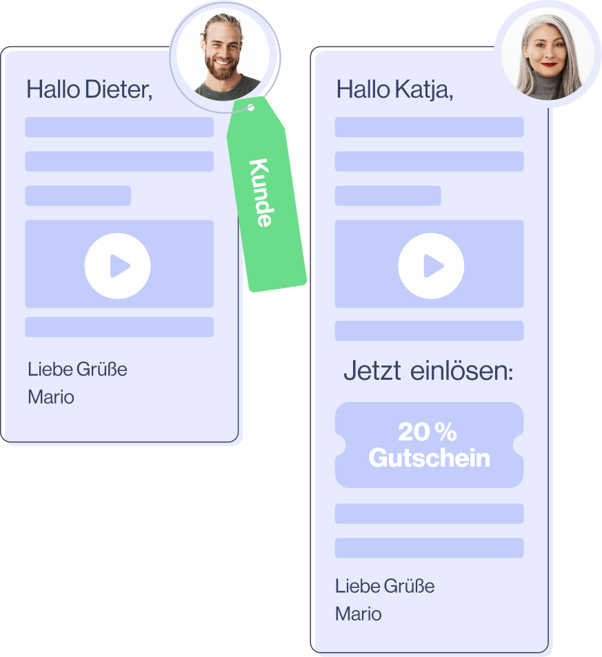 Erstelle in wenigen Minuten authentisch personalisierte E-Mails und Newsletter, die Deine Empfänger faszinieren und Deine Umsätze in die Höhe schnellen lassen.